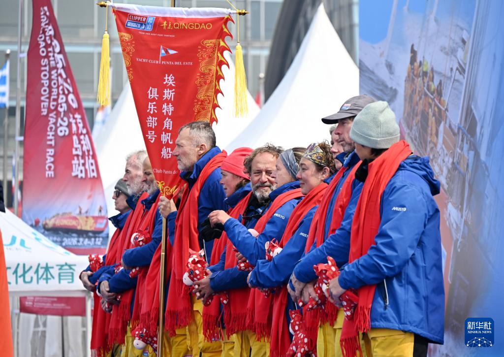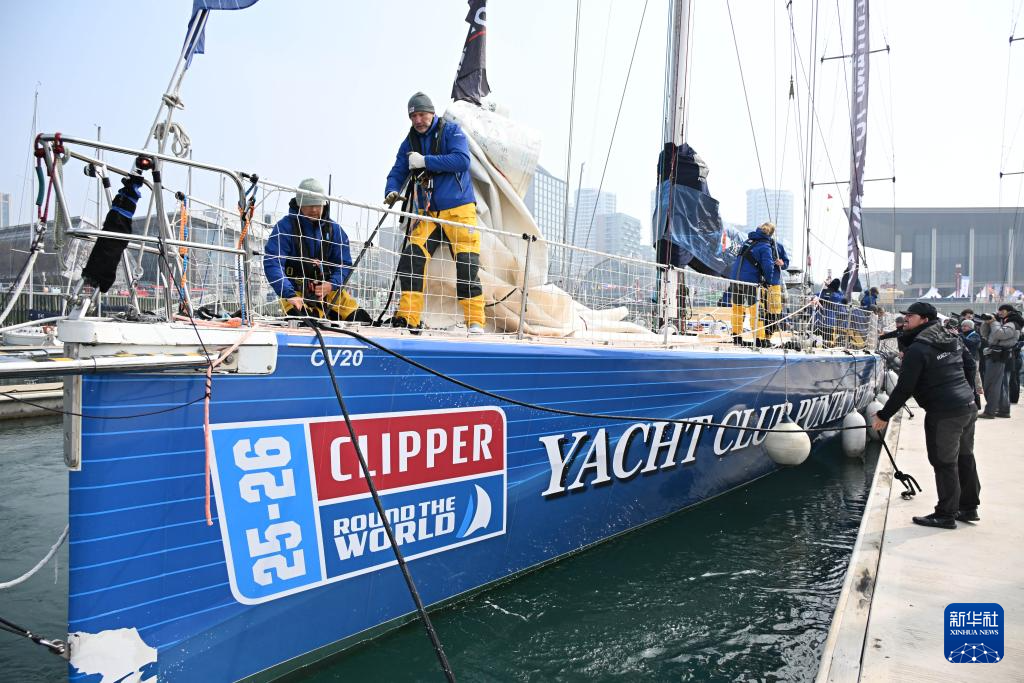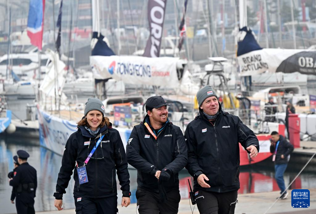 3月4日,埃斯特角帆船俱乐部号队员抵达青岛奥林匹克帆船中心码头。新华社记者 李紫恒 摄
