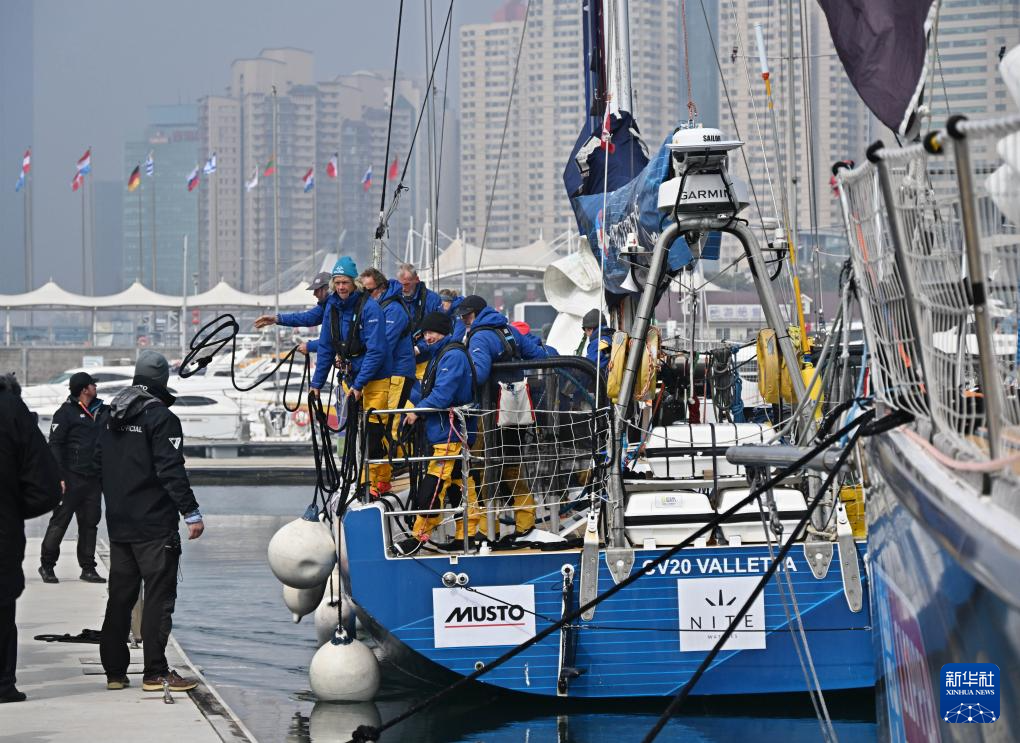 3月4日,苏格兰号队员抵达青岛奥林匹克帆船中心码头。新华社记者 李紫恒 摄